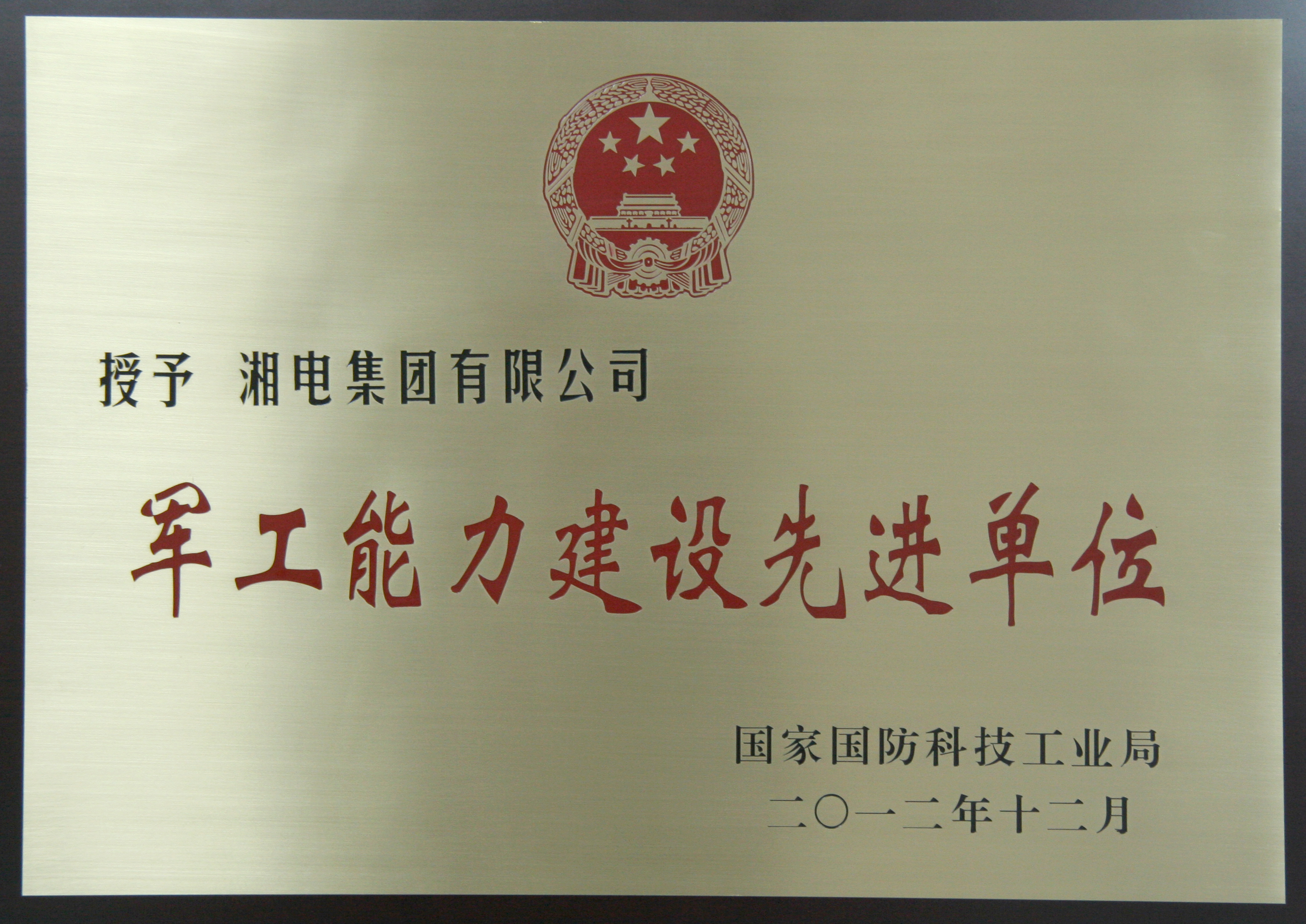 2012年12月,軍工能力建設先進(jìn)單位